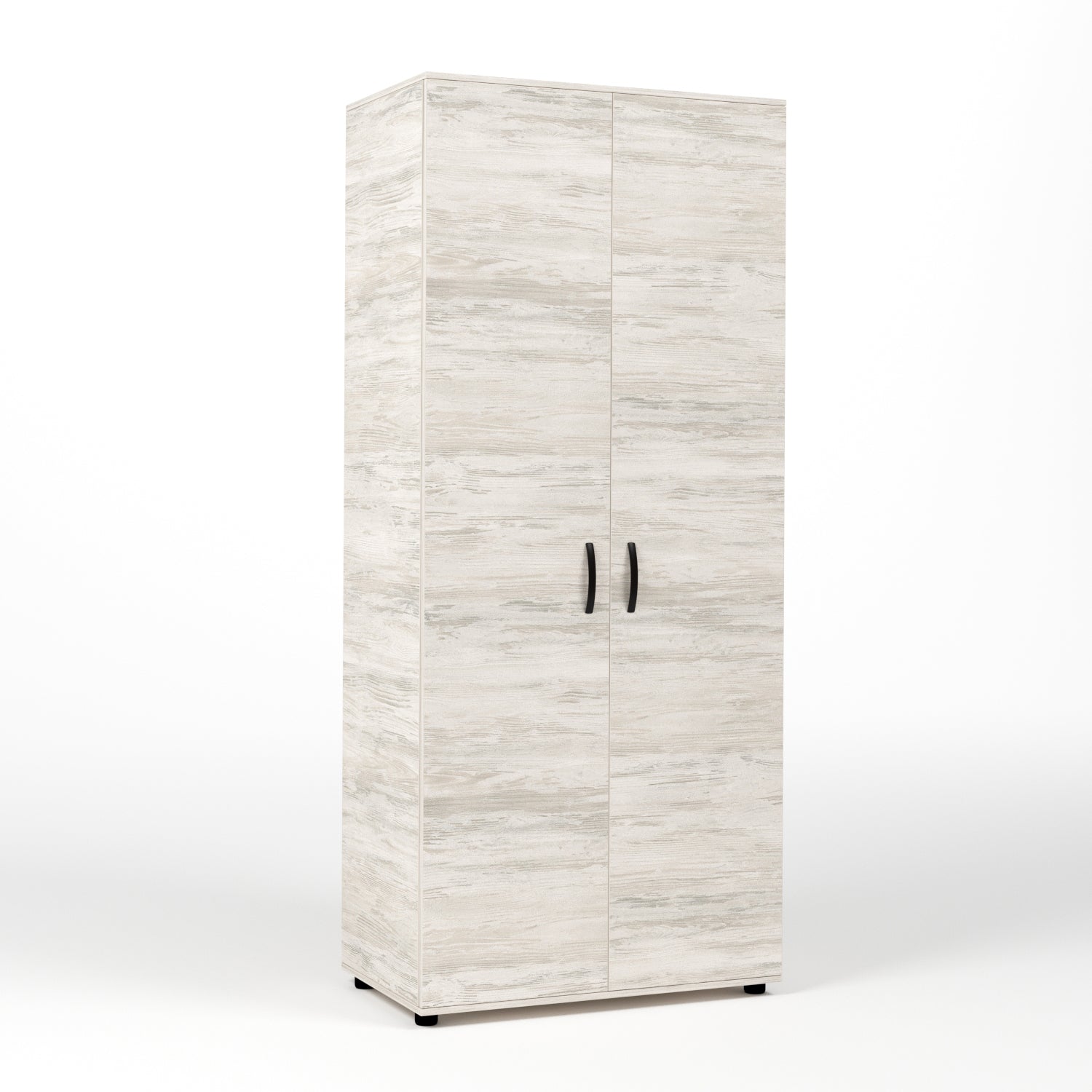 armadio due ante. Interna un'asta appendiabiti e un ripiano fisso. Maniglie in metallo, piedini regolabili. Dimensioni 80 x 52 x h 205 cm. Colore bianco ven.