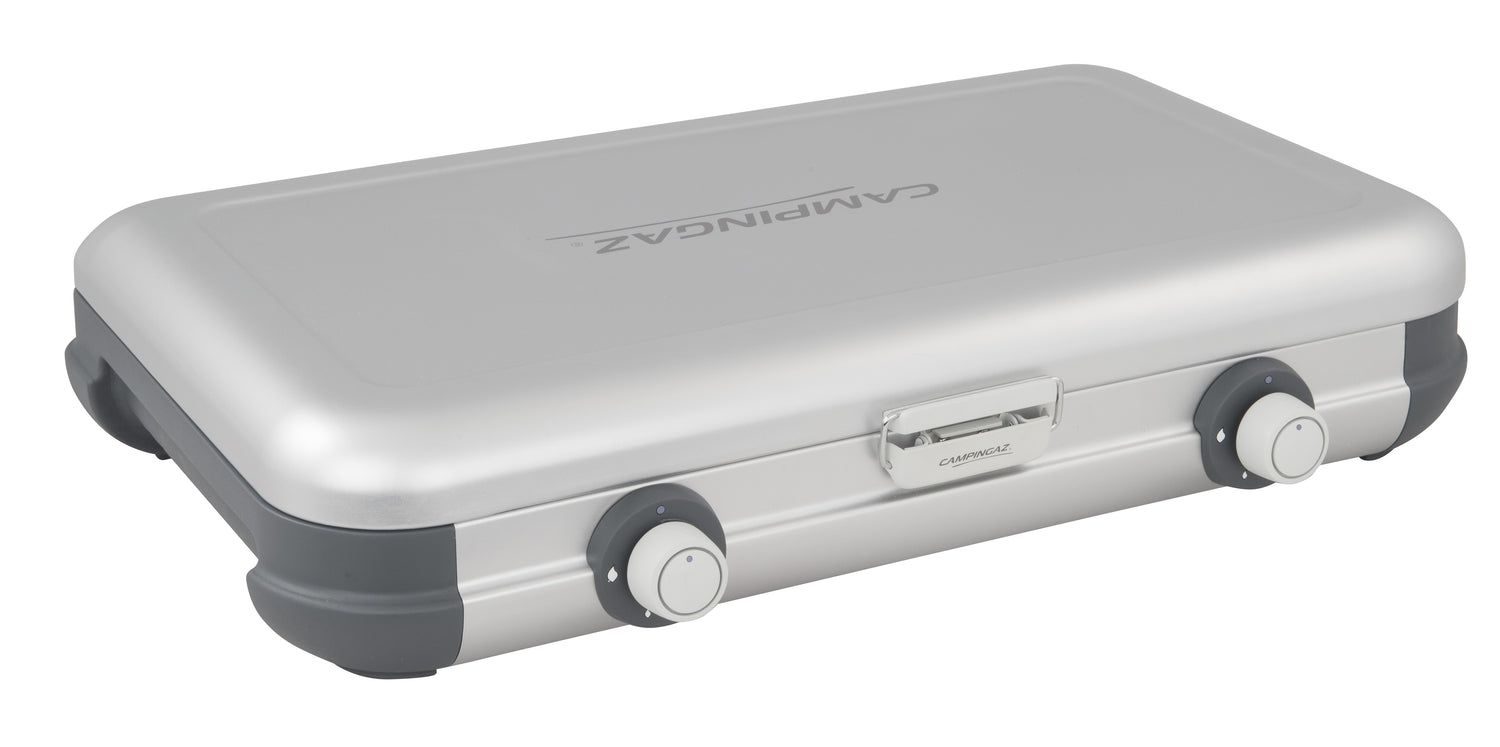 fornello Campingaz a 2 fuochi con supporti pentola, leggero e facilmente trasportabile. Impugnature laterali integrate. Coperchio in acciaio smaltato. Presenta, inoltre, pannelli laterali resistenti al calore con supporti in acciaio smaltato che fungono anche da paravento. Potenza 2 x 2000 W. Accensione manuale. Manopole per un controllo completo della fiamma. Alimentazione propano o butano. Pu supportare due pentole 24 cm. Dimensioni 51,5 x 37,5 x 45,5 cm. Peso 3,5 kg
