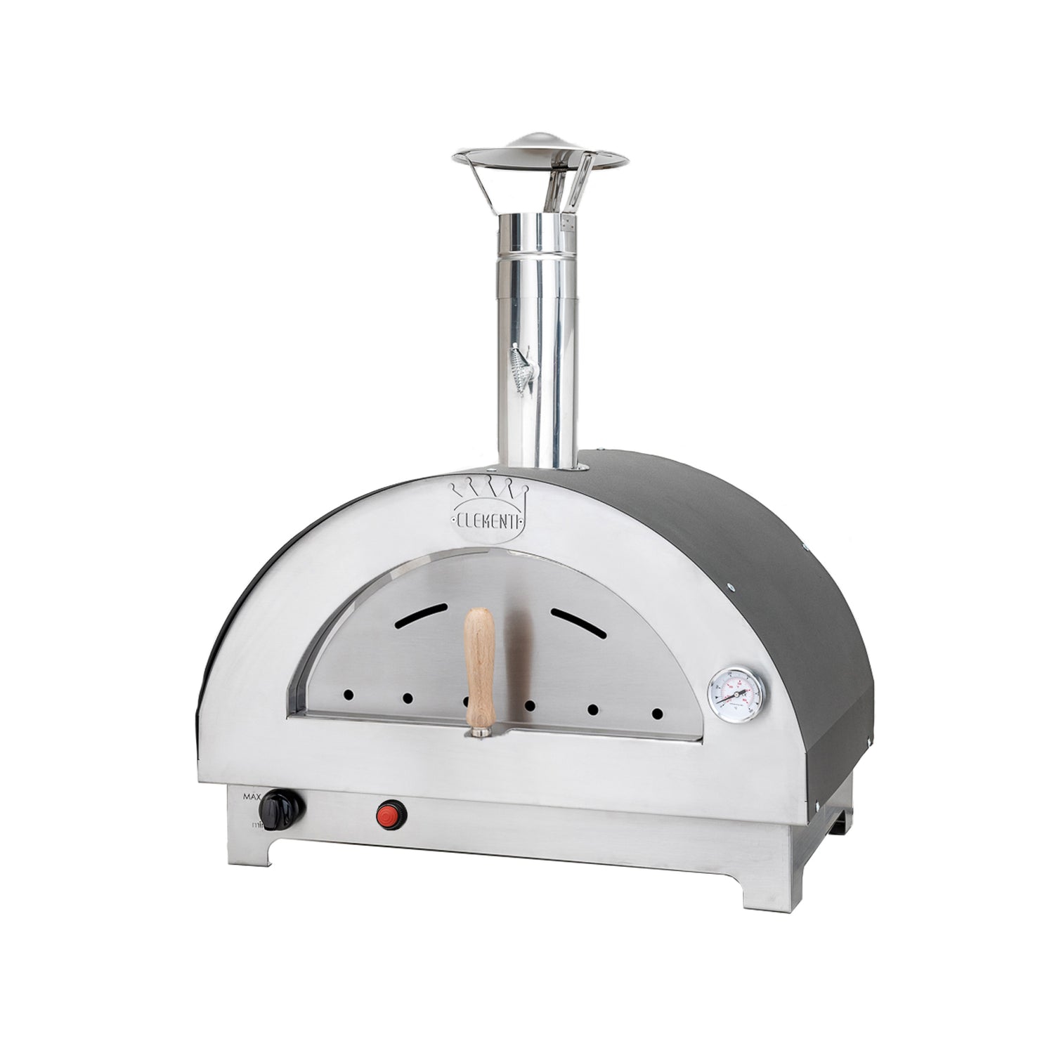 Forno Clementino a gas a cottura diretta, portatile e da appoggio. Bruciatore 7 kW. Ideale per luso anche in spazi limitati come piccoli balconi o giardini. Bruciatore a gas, posizionato lungo il lato sinistro della camera di cottura. Alimentato a GPL, coimentazione superiore, rivestimento interno inox, cottura veloce omignolo inox, sportello chiusura in acciaio, base in refrattario alimentare, accensione elettronica, manopola di regolazione. Dimensioni camera cottura 60 x 40 cm. Dimensioni esterne 71 x 52 x h 82 cm. Peso 50 kg