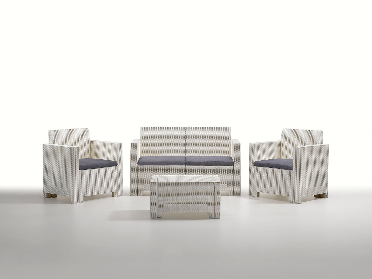 SALOTTO RESINA NEBRASKA 2 4 PZ C/CUSCINI BIANCO