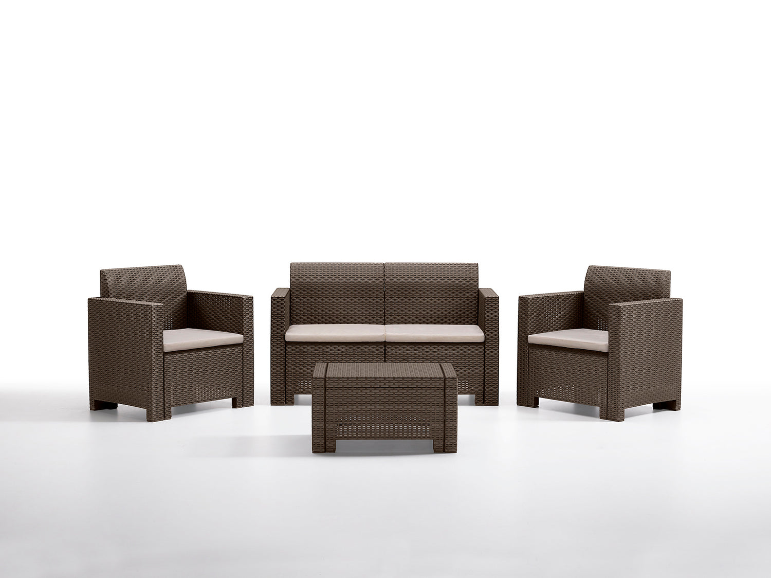 SALOTTO RESINA NEBRASKA 2 4 PZ C/CUSCINI MARRONE