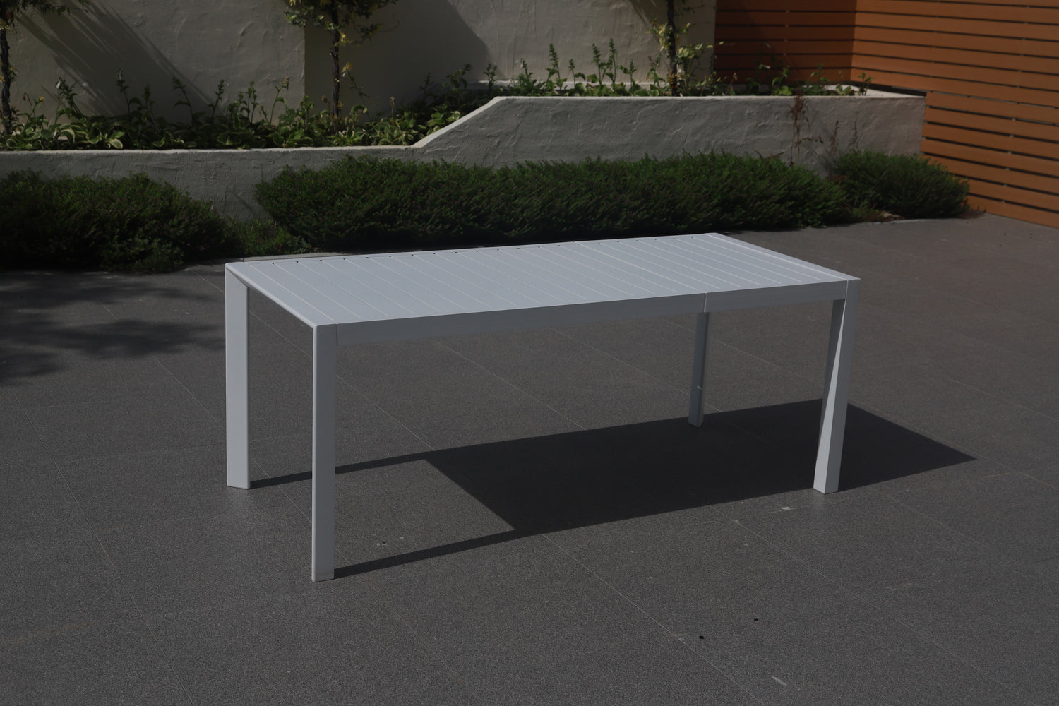 Tavolo allungabile in alluminio.Dimensione 127/180 x 77 x h 71 cm.Gamba triangolo misura 60x60 mm.