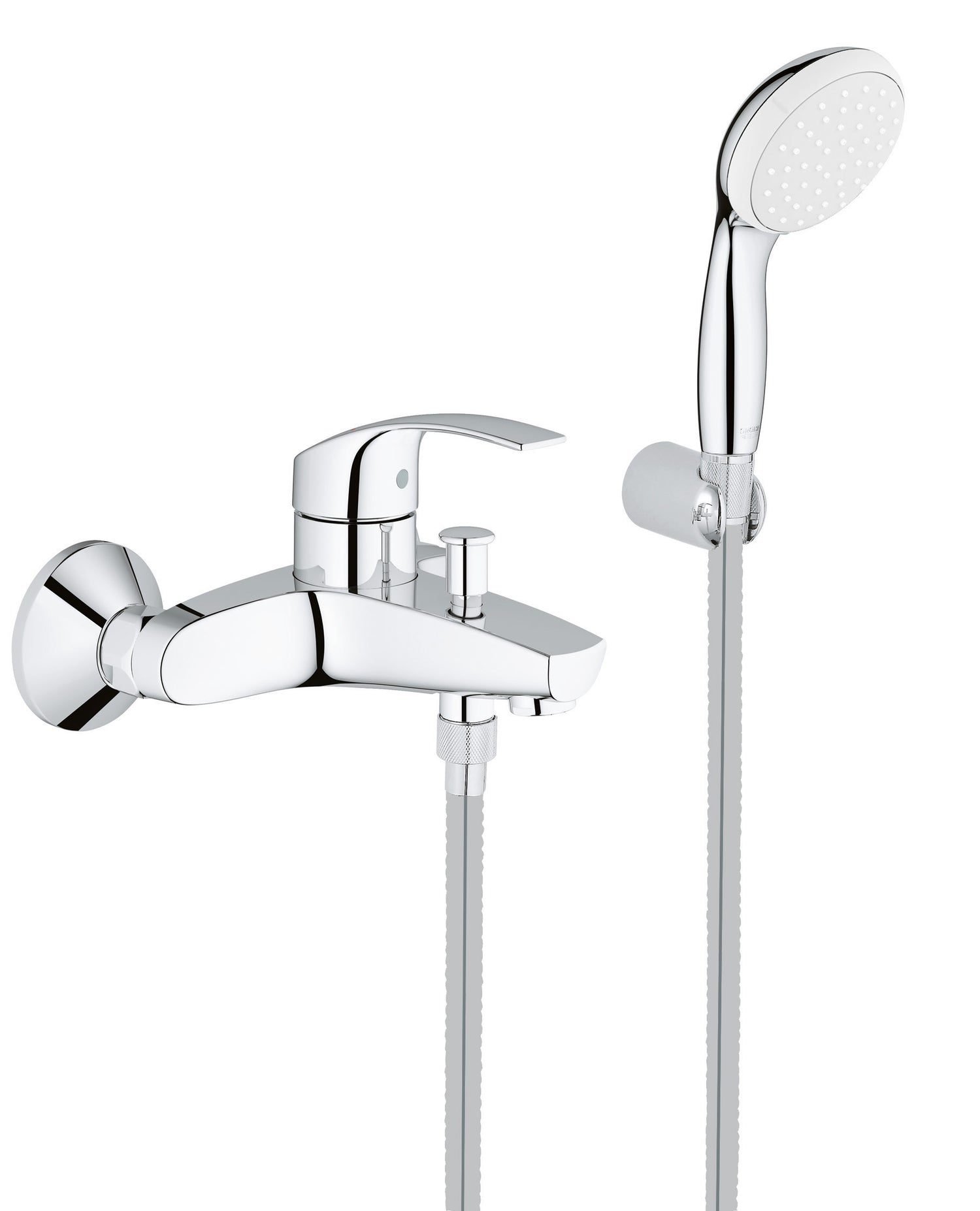 Serie EUROSMART NEW in ottone cromato. Monocomando. Miscelatore per vasca. Cartuccia ø 35 mm Completo di dotazione doccia. Dotato di limitatore di portata (da regolare) e di limitatore di temperatura (da regolare)