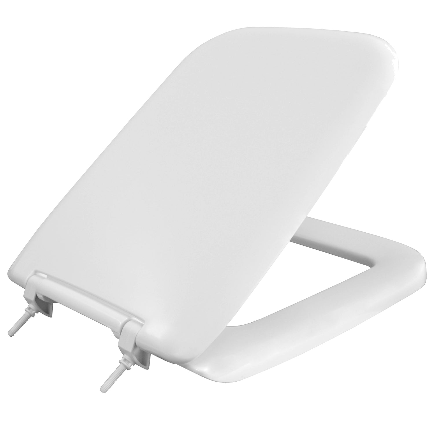 è un sedile WC duraturo realizzato in resina termoindurente con cerniere in plastica fisse (160 mm). Antigraffio. Paracolpi antiscivolo. Elevata resistenza al calore. Dimensioni 346 x 440 mm. Colore bianco. Peso 2,64 kg.Adattabile a IDEAL STANDARD Conca