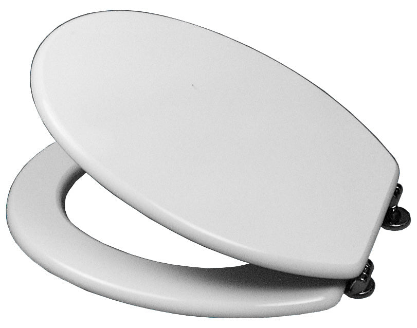 Mod. CLASSICO Sedile wc classico universale con un'anima interna in legno ricoperto da uno strato di resina poliestere colata con spessore di 4 mm. Colore bianco. Dimensioni 37 x 44 cm..