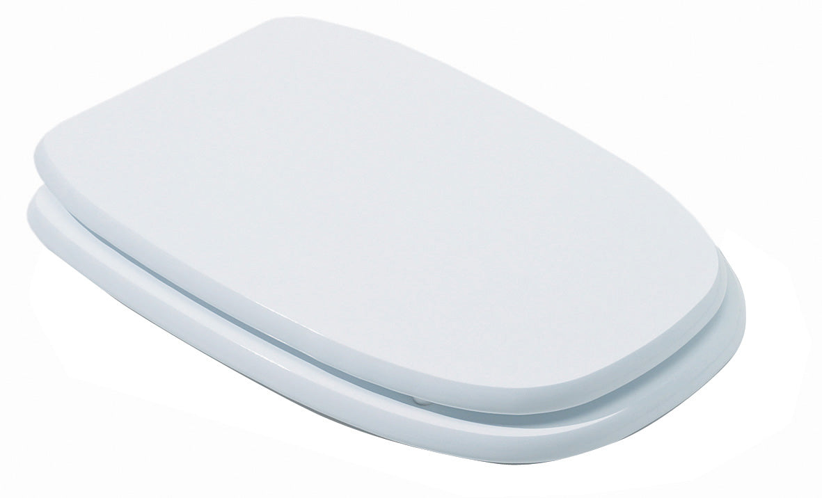 Sedile copriwater in MDF laccato in tre strati. Completo di cerniere ultradurevoli in metallo e di paracolpi. Indicato per vasi Pozzi Ginori. Facile da montare. Colore bianco. Dimensioni 36 x 46/51 x h 5 cm interasse regolabile