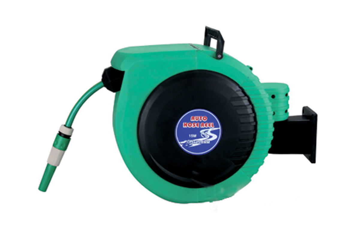 Mod. ROLLING-GO con supporto girevole a parete. Completo di: - 15 m di tubo da ? - 1,5 m di tubo di collegamento al rubinetto - Lancia - Raccordi