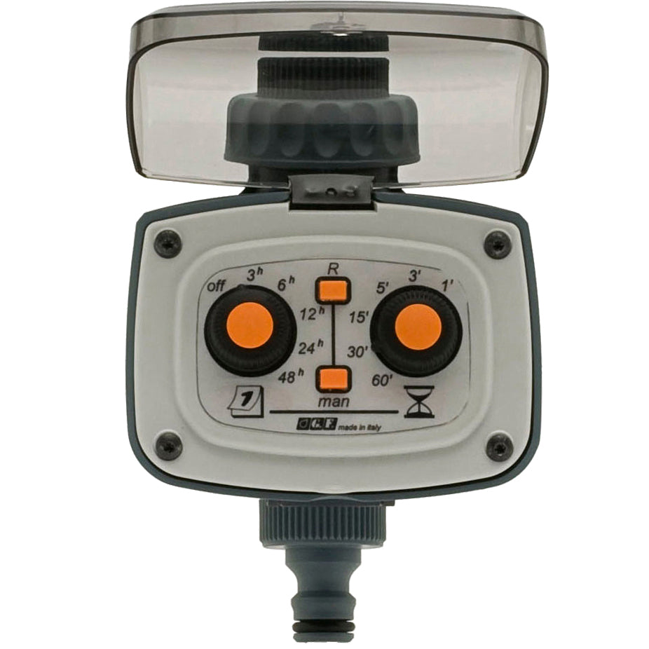 Mod. 6014 - GF30Alimentazione con batteria alcalina 9 V- Partenze ogni 3, 6, 12, 24, 48 ore per 1, 3, 5, 15, 30, 60 minuti- Tasto per partenze manuali al di fuori dei cicli di programmazione- Tasto di partenza ritardata di 8 ore dopo l?impostazione iniziale- Dispositivo di arresto del flusso dell?acqua in caso di esaurimento della batteria- Componenti elettroniche protette da acqua e umidità - Attacco al rubinetto da ??- Pressione massima di utilizzo 8 bar