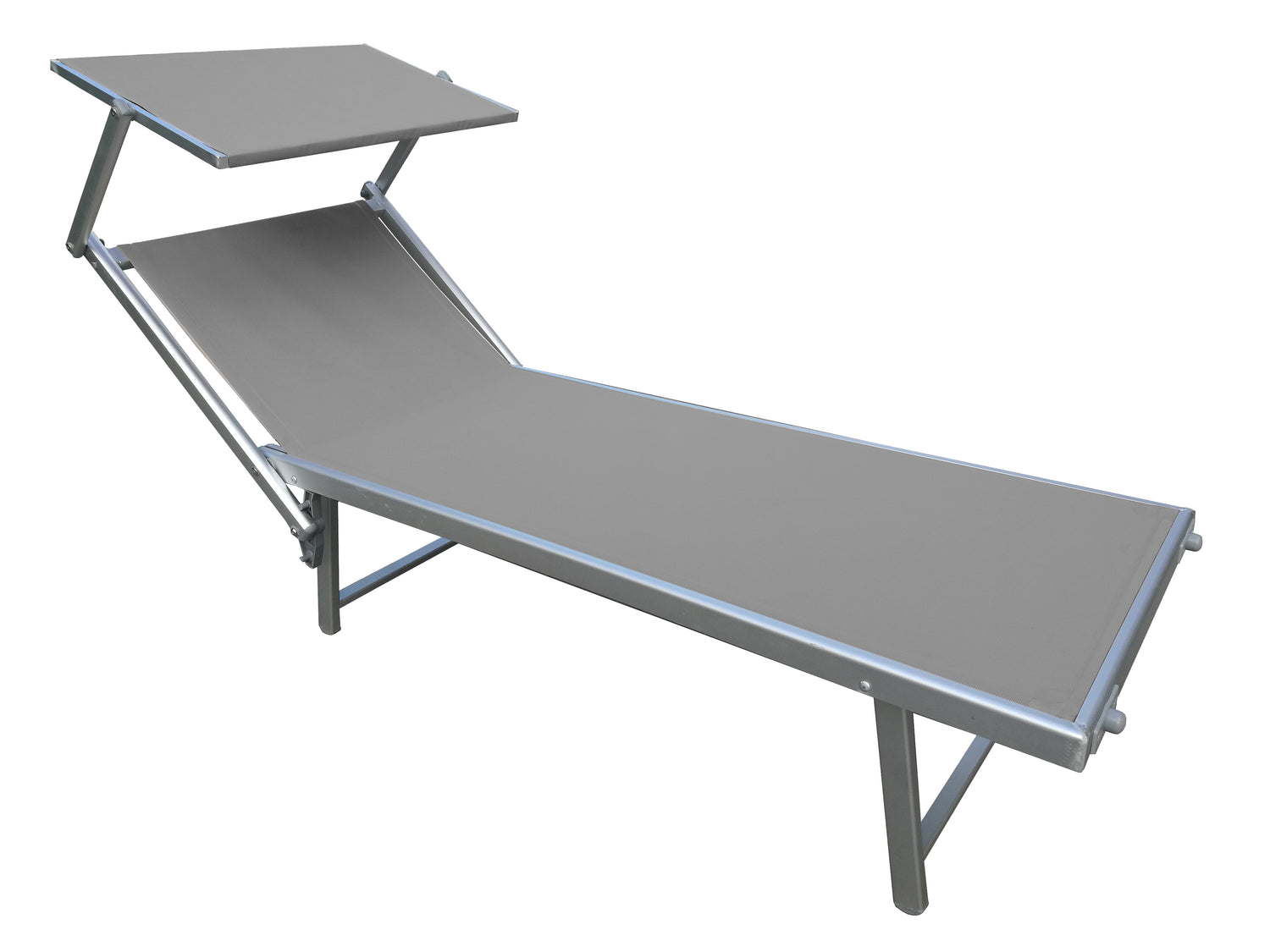 Lettino in alluminio/acciaio con parasole grigio