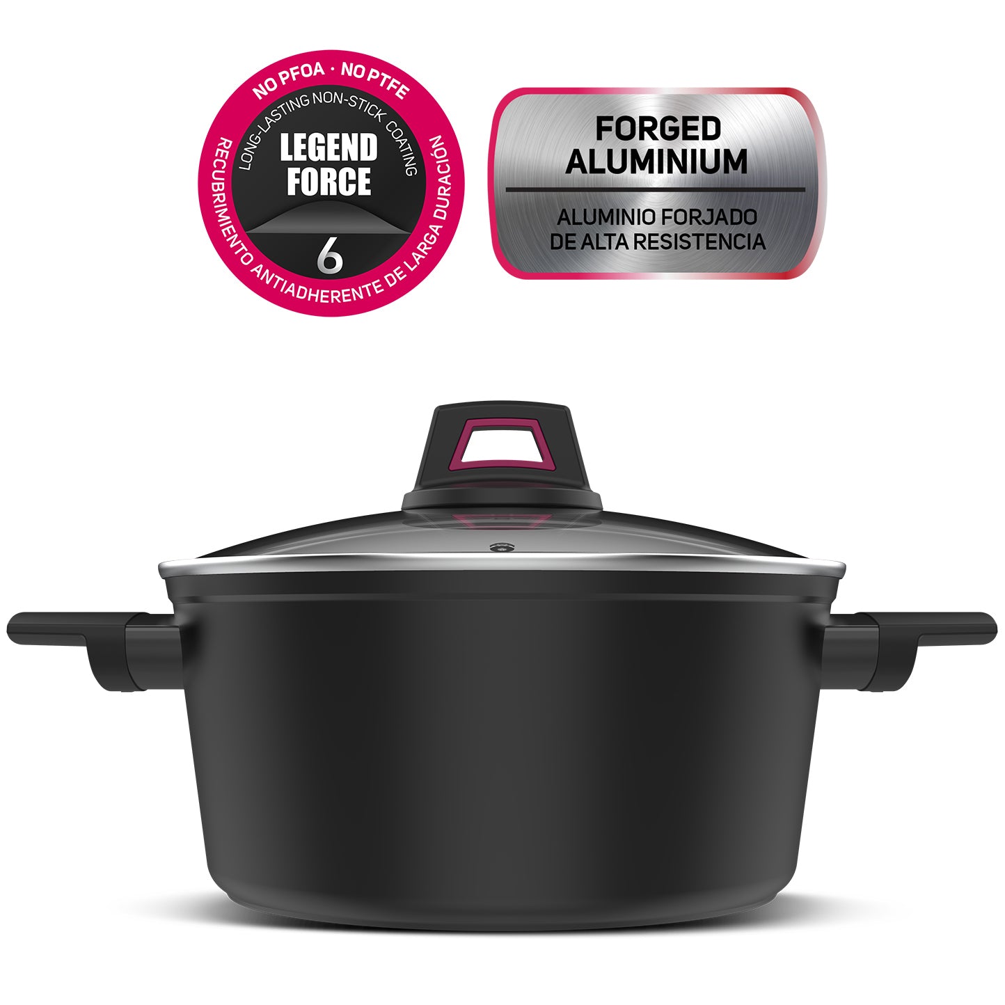 Pentola in alluminio forgiato di 28 cm di diametro, nella quale potrai cuocere un'ampia varietà di cibi senza che si attacchino sul fondo. Antiaderente in alluminio la puoi utilizzare in ogni tipo di cucina: vetroceramica, fornello elettrico, gas o induzione. No PFOA. No PTFE. Lavabile in lavastoviglie. Nella confezione e' incluso il coperchio in vetro.