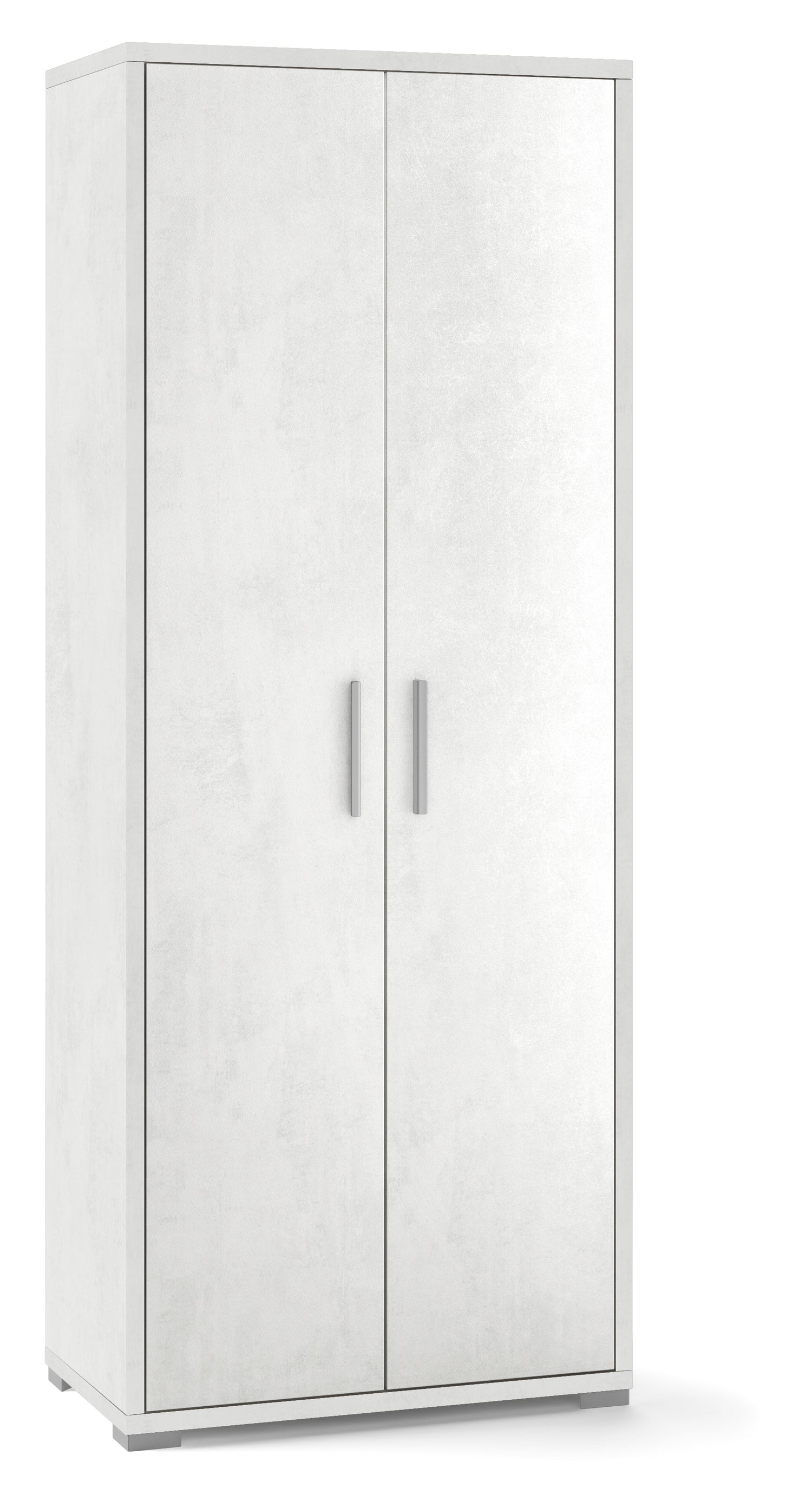 DOUBLE - Struttura sp. 25mm e ripiani sp. 18mm, ante sp. 16mm, bordi in ABS. Interno 2 ripiani regolabili e 2 fissi. Maniglie e piedini verniciati cromo satinato. Mobile in kit. Dimensioni cm 182x71 Colore ossido/ossido