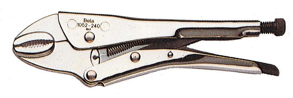 Art. 1052 corpo in lamiera, esecuzione cromata. Ganasce concave in acciaio legato. Lunghezza 190 mm