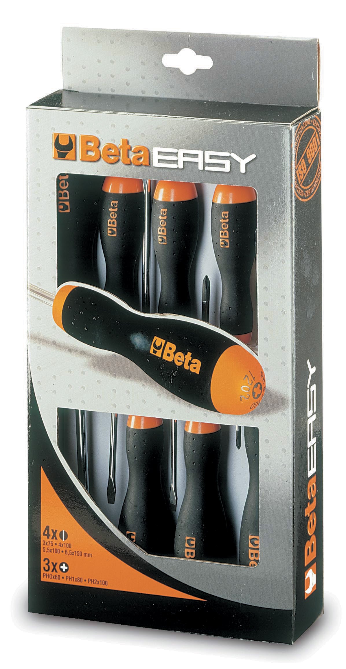 Art. 1203/D7 serie 7 giraviti in acciaio al cromo vanadio, punta nera. Impugnatura bimateriale. Composta da: -Art. 1201 ( diametro x lunghezza mm 3x75 - 4x100 - 5,5x100 - 6,5x150 ) -Art. 1202 ( diametro x lunghezza mm 3x60 - 4,5x80 - 6x100 )