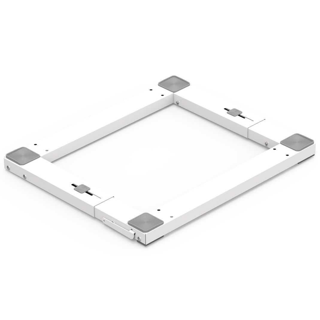 Base in metallo antivibrazione con ruote, specifica per lavatrice, asciugatrice o frigorifero. Freni laterali estraibili, per immobilizzare e muovere facilmente l'elettrodomestico, facilitandone la pulizia dietro. Portata Max 250 kg. Universale: estensibile in profondità da 44 cm a 60 cm. Adatto ad elettrodomestici con profondità 38-60 cm. Altezza 3,6 cm, con ruote sollevate 4 cm.